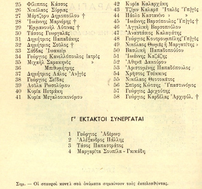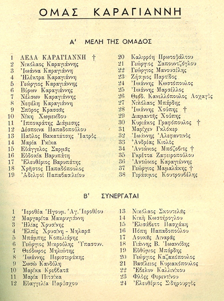 Lela Carayannis' "Bouboulina" Primary Team of Greek Patriots (several executed with her - crosses afrer names)