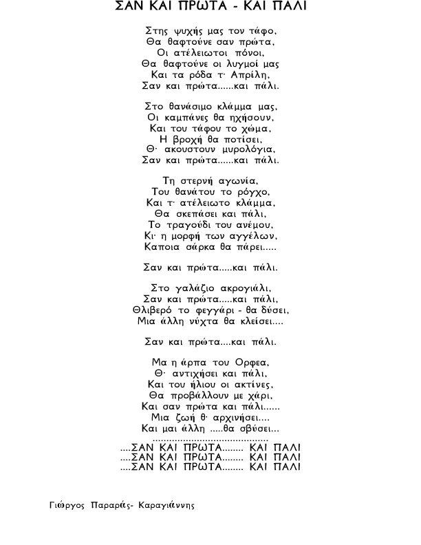 As Before and Again - San kai Prota kai Pali a poem in Greek George Pararas-Carayannis